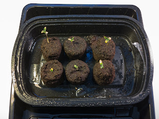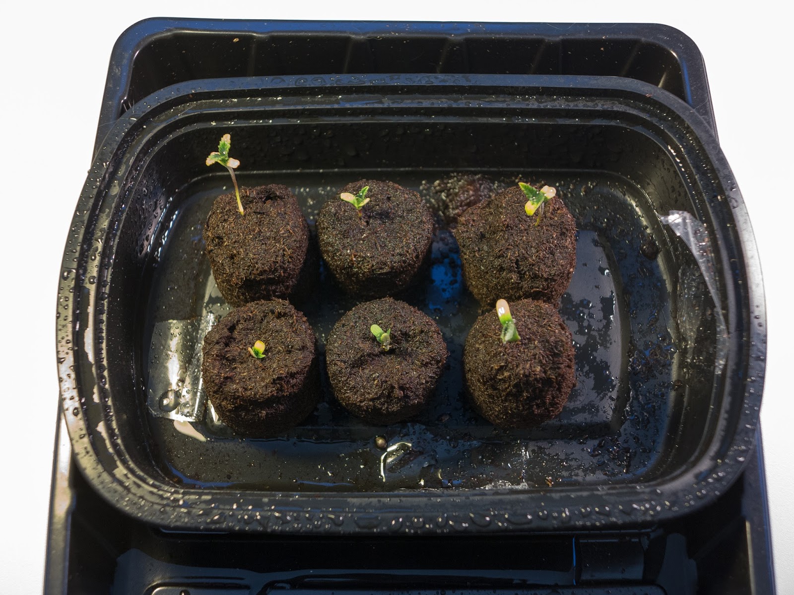Watering: Using a mist sprayer to wet the peet pellets each day as they look dry. We also leave excess water in the tray so that the dome retains humidity. It has been very hard to water these and the peet pellets look dry on the bottom.