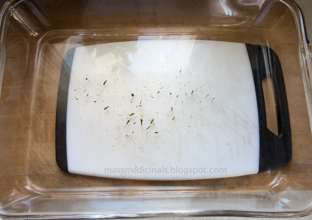 Pour all of the cannabis isopropyl alcohol solution into your baking dish. You can use more alcohol on the jars and devices to ensure that you are not leaving any trichomes.
